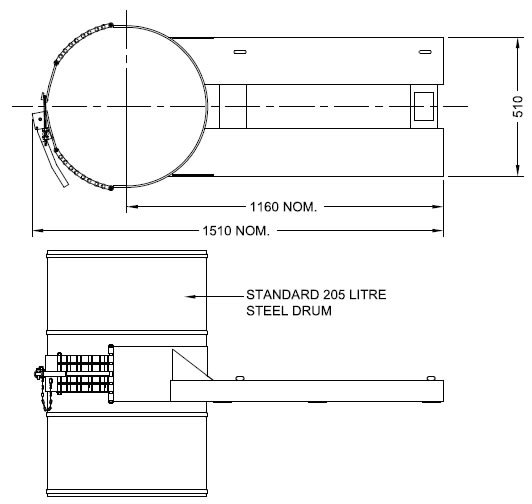 The safest drum lifter available. This attachment ensures 205L steel drums are moved with 100% security. The drum is quickly clamped via eccentric lock. A further safety catch prevents accidental release.
